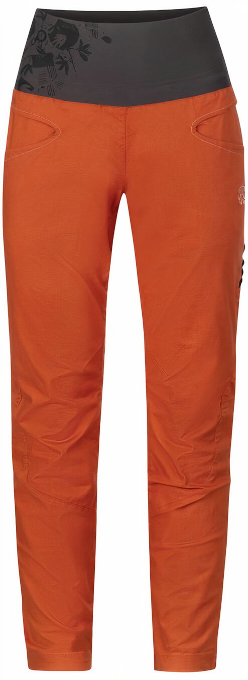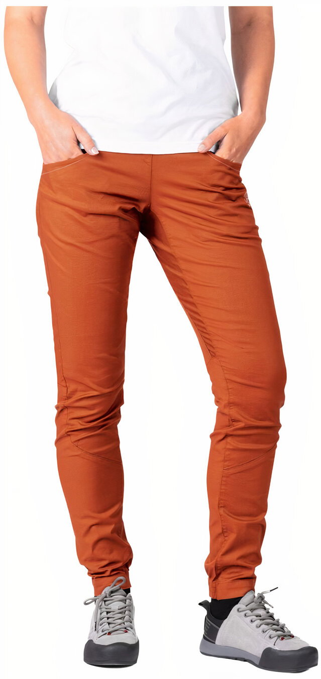 Dámské kalhoty Massone natáhneš a lezeš. Jde o lezecké kalhoty v každém detailu – široká manžeta v pase, vsazený klín, tvarovaná kolena, nebo nohavice vzadu stažené do gumy, aby dobře držely nad kotníkem a nepletly se ti při lezení.